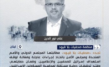 وهج نيوز / الأخبار أدانت منظمة صحفيات بلا قيود جريمة الاستهداف التي أسفرت عن مقتل الإعلامي ومقدّم البرامج الدينية في قناة المنار الفضائية علي نور الدين، جنوب لبنان.ووفقًا للإعلام الرسمي، شنّ طيران الاحتلال الإسرائيلي غارة جوية، يوم الاثنين 26 كانون …