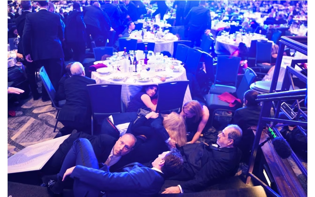 أخلي الرئيس الأمريكي، دونالد ترامب، ونائبه، جي دي فانس من قاعة حفل عشاء مراسلي البيت الأبيض، فجر الأحد، بعد سماع دوي طلقات نارية قرب مدخل القاعة،