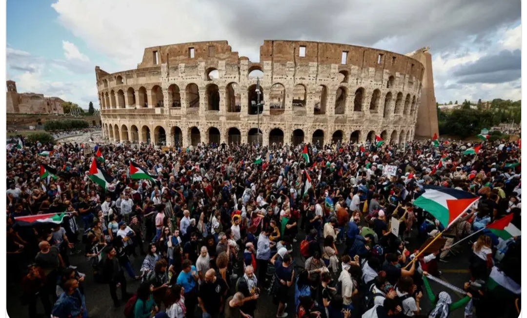 انقلبت إيطاليا رأساً على عقب بالإضرابات والاحتجاجات التاريخية التي تشهدها الآن، والتي أدت إلى شلل عام في الحياة والاقتصاد والحركة التجارية، وذلك تضامناً مع قطاع غزة ضد إسرائيل، إذ خرج عشرات الآلاف من المتظاهرين تحت شعارات منها “لنعطل كل شيء”، للمطالبة بوقف شحنات السلاح المرسلة إلى إسرائيل، والضغط على الإسرائيليين لوقف الحرب على القطاع المحاصر.