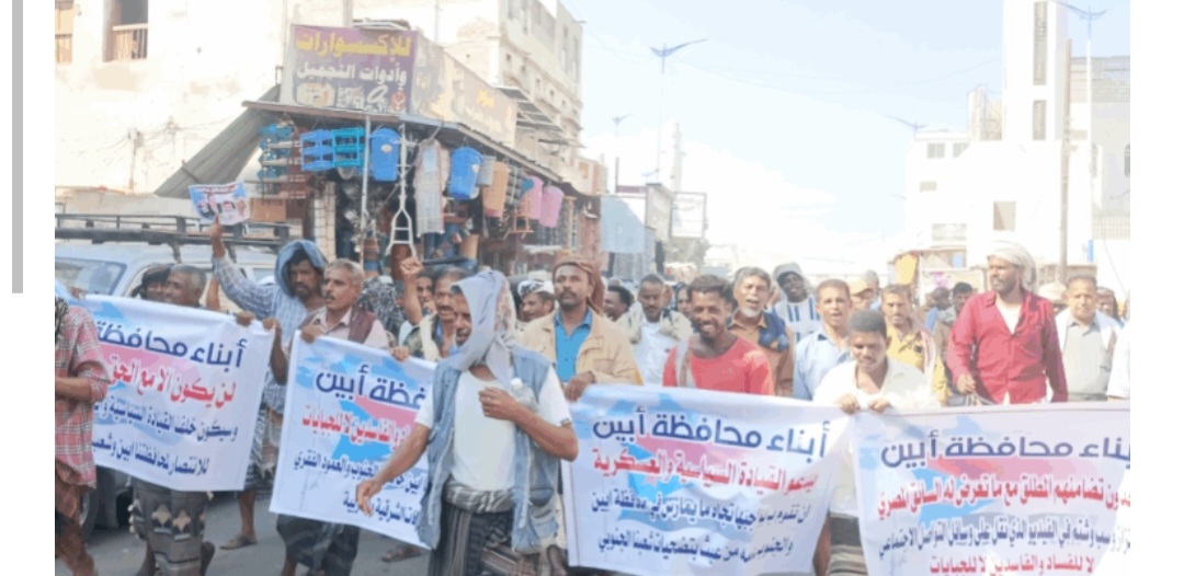 وأكد بيان صادر عن المظاهرة أن الجبايات المفروضة في أبين لم تعُد تساهم في تنمية المحافظة، بل تحوّلت إلى عبء إضافي على المواطنين ومصدر إثراء لفئات محدودة، داعياً إلى وقف هذا العبث المالي وإعادة تنظيم الموارد بما يخدم مصلحة السكان.