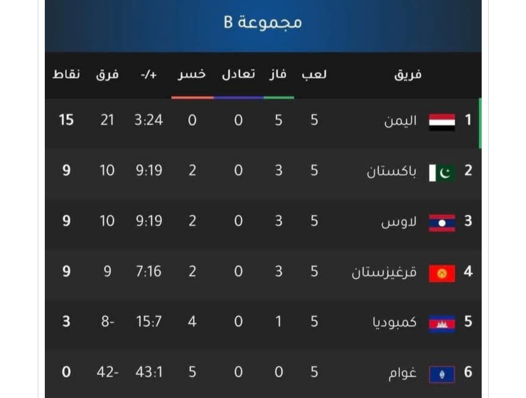 بهذا تأهل المنتخب اليمني الى نهائيات آسيا بالعلامة الكاملة في صدارة المجموعة الثانية، برصيد 15 نقطة من خمسة انتصارات متتالية، سجل 24 هدفًا واستقبلت شباكه 3 أهداف فقط.
