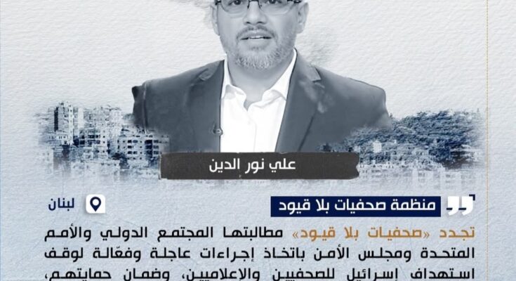 وهج نيوز / الأخبار أدانت منظمة صحفيات بلا قيود جريمة الاستهداف التي أسفرت عن مقتل الإعلامي ومقدّم البرامج الدينية في قناة المنار الفضائية علي نور الدين، جنوب لبنان.ووفقًا للإعلام الرسمي، شنّ طيران الاحتلال الإسرائيلي غارة جوية، يوم الاثنين 26 كانون …